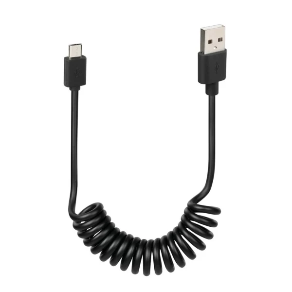 De kabel rekt uit bij gebruik en keert terug naar zijn oorspronkelijke vorm wanneer hij niet wordt gebruikt.