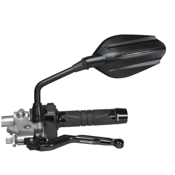 Mooie stuurspiegel van Chaft, mat zwart met een gekleurd biesje