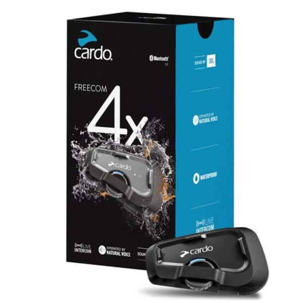 Het Cardo System Freecom 4X Single motorcommunicatiesysteem is uitgerust met de nieuwste technologieën. Ervaar uitzonderlijke geluidskwaliteit met live intercom en krachtige 40 mm high-definition luidsprekers, ontworpen door JBL-experts. Verbind tot een groep van 4 rijders tot een afstand van 1,2 km. Universele connectiviteit voor eenvoudige aansluiting op headsets van andere merken. Ook uitgerust met een Bluetooth 5.2-chip. Het maakt de integratie van de nieuwste audiotechnologieën mogelijk en verbetert de kwaliteit van de intercom aanzienlijk. Bluetooth 5.2 is ook efficiënter en veiliger, het biedt snellere koppelings mogelijkheden en een langere levensduur van de batterij.