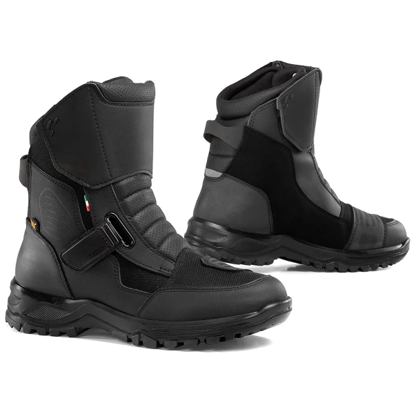 De Land 3 is een robuuste laars met korte schacht, een ademend en waterdicht High-Tex membraan en een geventileerd bovenwerk van ”Micro-Synth” en ”Air-Tech”. Een gevulkaniseerde rubberen zool zorgt voor stevige grip. Geïntegreerde stretchpanelen zorgen voor een comfortabel gevoel tijdens het rijden.