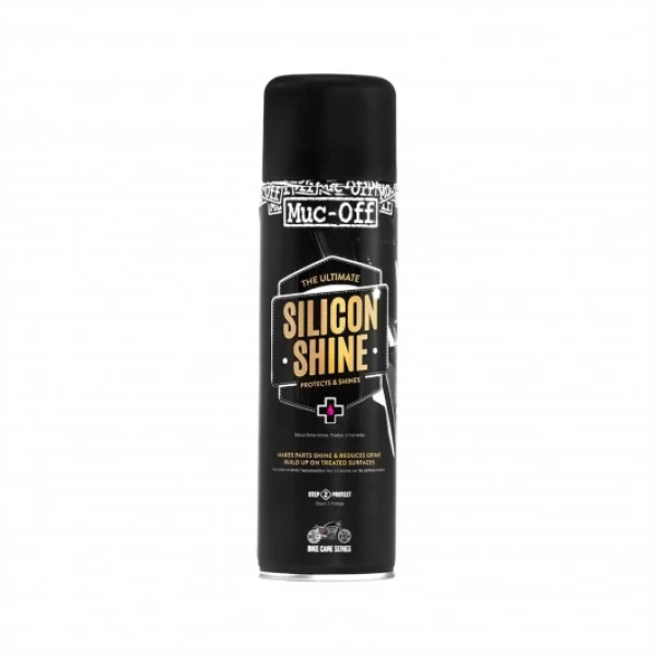 Muc Off introduceert Silicone Shine, het wondermiddel om uw kuipen of kunststofonderdelen er weer als nieuw uit te laten zien. Daarnaast reduceert de Silicone Shine de wrijving van uw veringonderdelen en stoot het ook nog eens vuil af. Spray de Silicone Shine op uw voorvork en achterschokbreker voor betere prestaties.
